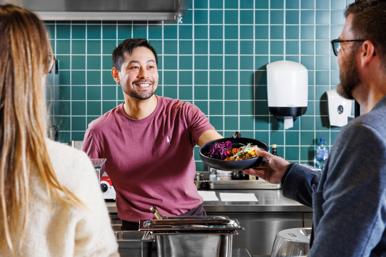 Nadja Lang: Das Besondere am Green Kitchen Lab ist, dass die pflanzenbasierte Ernährung im Vordergrund steht und Fleisch auf Wunsch das «Add-on» ist. Vor den Augen unserer Gäste bereiten wir die Menüs basierend auf gesunden, aber genussvollen Rezepturen, frisch vor Ort zu. Zudem setzen wir auf eine Raumgestaltung, die auf das Angebot und die Bedürfnisse unserer Gäste zugeschnitten ist. Weiter gibt es keine Kasse mehr, sondern wir arbeiten mit einem neuen System, bei dem automatisch die Kosten für die Konsumation eingescannt und abgebucht werden. Trotzdem ist uns gelebte Gastfreundschaft auch im Green Kitchen Lab wichtig: Es gibt eine Gastgeber:in, welche die Gäste willkommen heisst und bei Bedarf unser Konzept erklärt. Das Green Kitchen Lab ist die Mensa der Zukunft und in vielem vergleichbar mit einem Restaurant. Es ist zudem die erste Mensa, in der man einen Tisch reservieren kann. Wir decken hier also alle sechs Dimensionen des Begegnungsortes der Zukunft ab. Jeder der dieses einzigartige Konzept gerne erleben will, ist eingeladen, das Green Kitchen Lab an der Uni Irchel in Zürich zu besuchen. Es lohnt sich!